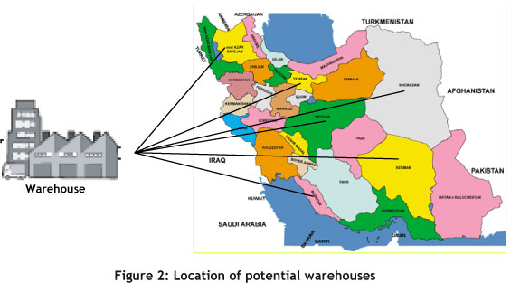 A case study inspired by a food producer in Iran is presented to demonstrate the validity and practicality of the model and solution method. The company owns one production site and six potential DC/warehouse sites in the different customer zones (Figure 2). There are three types of products and twenty main retailers.