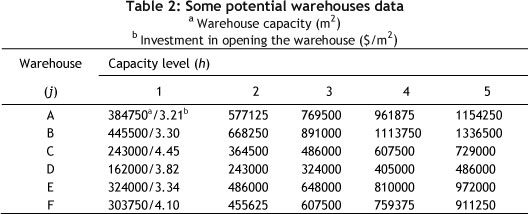 Ρ fixed cost for opening and operating warehouse with capacity level h on