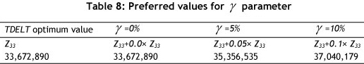 In the payoff table we calculate optimum (or local optimum) values for the three objective functions. In this approach, to compare each objective function against the others, we use the performance Index as a compensation rate. Since objectives Z3 and Z2 are very interactive, it is important for the DMs to evaluate the impact of increasing γ % in total delivery time (TDELT) on the system costs (INV and TCOST). To generate new scenarios we calculate the γ parameter based on the DMs preferences.