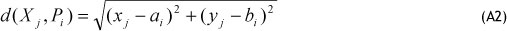 where wil is the weights of the demand customer zone i for product ' and d( Xj, Pi) is the distance between customer zone i , located at P' =(a¡ , b) and the warehouse j located at X= (Xj, yj). We consider the following Euclidean distance measure: