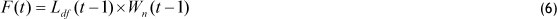 To obtain the forecast value at time t, we will use Eq. (6) where Wn(t-1) is a frequency weighted matrix for a corresponding FLR group of time t-1, and Ldf(t-1) is a deffuzified matrix of fuzzy sets midpoints.