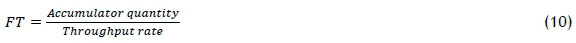 During the transient state, free time is calculated by dividing the accumulator quantity by the live throughput rate of the machine filling or draining the accumulator (whichever is relevant, given the prime or clear condition):