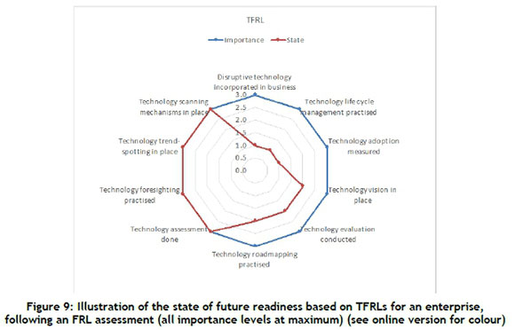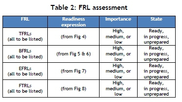 The matrix presented in Table 1, consisting of the FRLs and the audit units of measurement, form a mapping of the future readiness. They should be populated with the information for the organisation by: