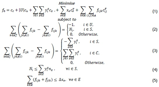 The objective function is similar to the other formulations, except that the feeder and distribution networks are shown in separate parts. The last terms in (16) show the arc-flow fifj. ε Z and path-flow fdpε Z variables. yzi ε N0is a decision variable for the optical splitter types at each location. Constraint set (17) is the same as constraint set (12), which corresponds to the constraints for the feeder network. Constraint set (18) is the same as constraint set (7), which allows every ONU to be connected to only one optical splitter. Constraint set (19) ensures the correct optical splitter ratios. Finally, edges are enabled with big-M constraints in (20).