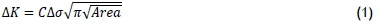 In Equation 1, the constant C is taken to be 0.65 for surface defects or non-metallic inclusions, and 0.5 for internal defects or non-metallic inclusions [6, 7, 8]. A pore or inclusion that results in a value of ΔΚ that is larger than the change in stress intensity threshold (ΔΚth) will lead to propagation of the crack, and eventual failure of the loaded object.
