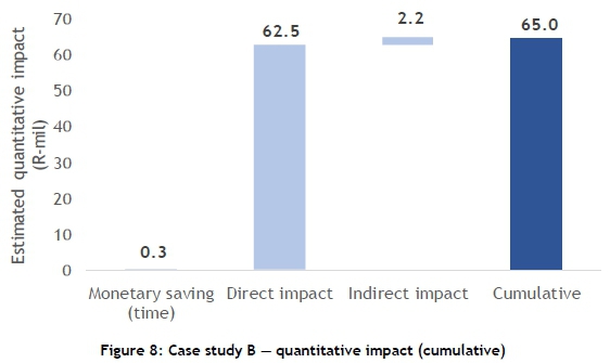 As an indirect impact of the reports, the results have also been used to verify electrical metering anomalies - one of three systems used to track electricity consumption. In a specific case, this resulted in finding a billing mistake that, when corrected, resulted in a recovered cost of R 2.2-million. The cumulative impacts related to the energy reporting discussed in this section are shown in Figure 8.
