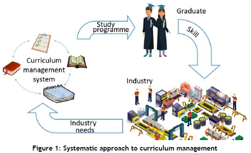 If curriculum management were to be automated and executed systematically, this could make the process more efficient. Some research has looked into automated curriculum management systems [14] and [15]. It is noted that highly robust systems are required in order to comprehend the complexity of the education ecosystem. However, most automated systems are designed to meet the purpose of curriculum management from the student's perspective. In fact, several higher learning institutions, especially in Europe, America, and Asia, have developed standalone systems for students to manage their individual curriculum in terms of structure and courses (elective and core). The gap is in automating curriculum management from the institutional perspective in order to improve the curriculum - in this case, to improve its alignment with industry needs. The main idea, therefore, is to automate the process of aligning curriculum with industry.