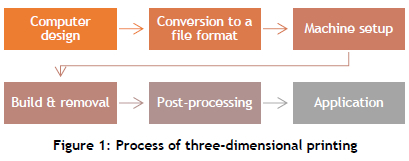 Three-dimensional printing is an additive manufacturing process that employs digital model data to construct a variety of complex structures and forms in a layer-by-layer fashion [1]. The general procedure involved in three-dimensional printing is shown in Figure 1.