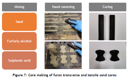 The hand-rammed sand cores were assessed for the physical and mechanical properties shown in Table 2, following the American Foundry Society (AFS) standard testing procedures [13].