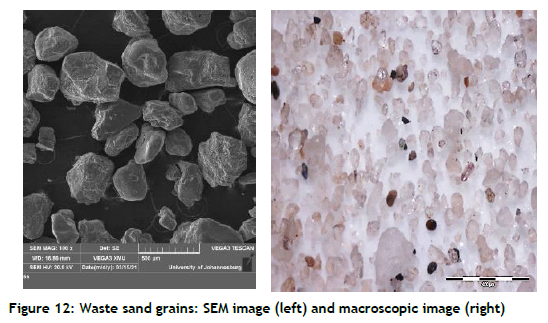 Figures 12 to 14 show the SEM and macroscopic imaging of the sand grains before and after sand reclamation by dry and wet attrition. It can be seen that the sand grains before mechanical reclamation were angular to sub-angular with a medium sphericity.