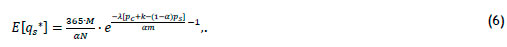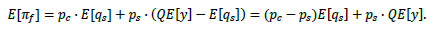 The last (integral) term is the shortage in yield rate as a result of a poor harvest. We can use Equation 2 to calculate the average supply per farm under random yield. Note that the expected supply per unit of farmland is a function of the contract quantity, as shown in Equation 3 - i.e., qc is implicit in E[ys].