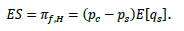 In the absence of our premium market, each farmer's total profit is ps - QE[y]. If there is a premium market, it generates additional profits - i.e., the economic surplus (ES) from the H market. Thus,