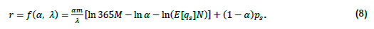 In the short term - e.g., within a year - we consider the supply E[qs]N to be fixed. We let r = [E(nm )/E(qs )N] + pc + k be the revenue contribution per unit of product. The r is a function of both α and λ. By rewriting the above question, we obtain