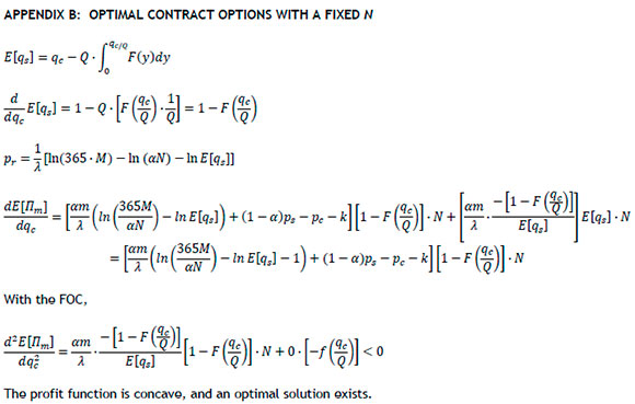 The fact that the two parameters of the supply contract are not independent is a characteristic of end-to-end integrated chains. Therefore, one is derivable from the other. For any given N, we obtain the profitmaximising contract quantity from the necessary condition dE(jim)/dqc = 0 (see Appendix B):