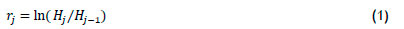 The RO factors σ,u, d, and ρ are determined. Volatility, σ, is a standard deviation of historical returns, rj [22]. It is assumed that historical revenues less operating costs (H) follow a lognormal distribution [23]. The values of rj, are derived from equation (1) [23].