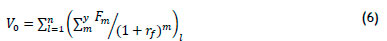 In equation (6), F is the expected cash flow, m is the number of years from the cash flow year to the evaluation date [27], I is the number of investment projects. Equation (6) is the sum of the η investment present values, where the term inside the brackets is a present value formula [27].