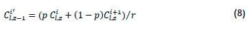 In equation (7), i represents the number of rows in each column of Table 3; for example, for Τ = z, i = 1, -, z + 1. The call options values at Τ = z are used to determine call option values at Τ = z - 1, where ϊ' = 1, ..., z, using equation (8) [10].