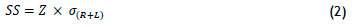 where the safety inventory is composed of the safety factor as a function of the desired service level Ζ and the standard deviation of demand (σD) during R and L (equation 2).