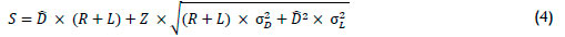 Equation 2 assumes a fixed delivery time without deviation; it only considers a possible variation in demand. If there is uncertainty in the waiting time, as in our case it is necessary to modify the standard deviation formulation to take account of this new uncertainty and increase the level of the safety inventory (equation 3).