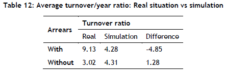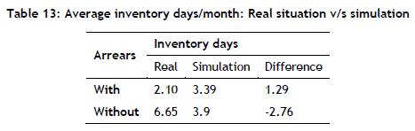 Table 14 shows an increase in the average monthly inventory that, in the real situation, had arrears, to be able to reject it. On the other hand, it decreased for those parts that did not have arrears.