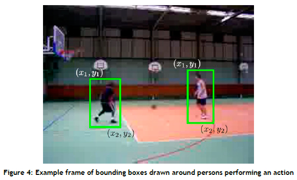 If a user inputs unlabelled data or wishes to label already inputted data, the user can use a data labelling module for this purpose. The video files provided by the user are all saved to a central raw data folder. The raw video files are selected and labelled iteratively, after which the labelled data are saved as images and text files containing annotations for the labelled actions. A data labelling tool called DarkLabel [49], an open-source utility program for image and video labelling, is employed as part of the labelling module. The annotation files are created per frame with a single label file containing all the actions labelled in that frame. The data labelling process is an iterative process, according to which each frame is presented to the user through the GUI, and the user provides bounding boxes (shown in Figure 4) for all the actions in the frame - a process that is repeated until the user is satisfied with the number of labelled frames.