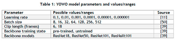 A sensitivity analysis is employed to determine the sensitivity of a model's performance in respect of parameter variations. Values deemed to be of a small, medium, and large magnitude are considered for each numerical parameter. In the case of non-numerical parameters, a selection of the most popular approaches in the literature is used. A baseline model is established (based on the parameters of Köpüklü et al. [39], as shown in Table 2) after which individual changes are made to each parameter. A summary of the different parameter combinations is presented in Table 5.