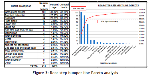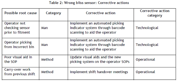 The defect that required technological intervention on the rear-step bumper line was the wrong bliss sensor. The possible causes of the problem were wrong sensors being picked by operators and picking from an incorrect bin.