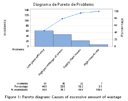 The issue discovered in this industry, as determined by a review of the relevant literature, is attributable to a few causes, including an excessive number of nonconformities, machine malfunctions or jams, inadequate planning, and lengthy setup times. As a result, organizations show sub-optimal levels of efficiency in their work procedures. Extended client product delivery periods, rework, and defective items are the primary reasons for this. The lack of application of work tools, such as method improvement, generates dissatisfaction about customers' deliveries [7]. To identify the main problem reducing productivity in the company, a Pareto analysis was conducted, as illustrated in Figure 1.