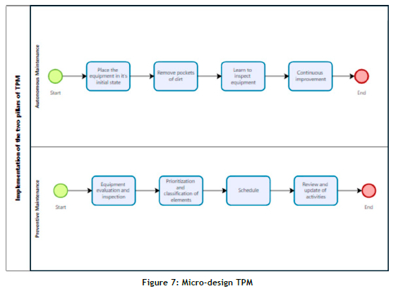 In TPM: A foundation of operational excellence, [30] present a complete 11-stage TPM model, highlighting the importance of active staff participation and autonomous and preventive maintenance. Our study integrates these concepts by implementing two of the fundamental pillars of TPM, adapting them to the needs and capabilities of an SME. This approach not only validates TPM's relevance in improving operational efficiency, but also demonstrates how its application can be adjusted to maximise results in resource-constrained environments.