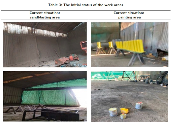 This stage began with a visual inspection of the initial conditions of both booths, as well as the use of forms to assess their initial situation, as shown in Table 3.