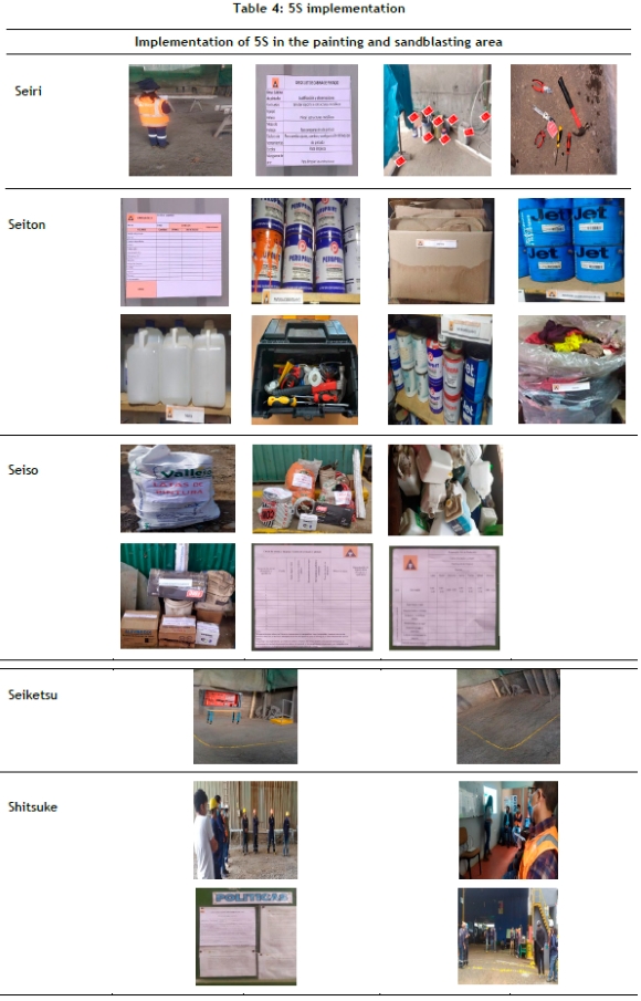 Through the implementation of the 5S tool, it was possible to keep workspaces more organised, facilitating the identification of tools, reducing the time spent searching for them, and increasing workers' awareness of the 5S principles. In addition, it improved ergonomic conditions in the painting booth, resulting in enhanced work performance. Figure 4 details the steps taken to carry out this implementation.