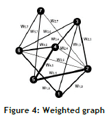 The simplest approach to represent a network is through its adjacency matrix (A), which is necessary to keep track of all its links and to provide a comprehensive network description. In a directed network, the matrix's entries (Αij) are 1 if nodes i and j are connected by a link, and otherwise 0 [19]. Therefore, network links are usually represented as simple binary connections between nodes, but more complex networks may require weighted links [24]. In a weighted graph, each link is associated with a weight corresponding to the strength or importance of the relationship between two nodes [24]. Owing to its topology and quantitative information inclusion, this represents real-world systems more accurately [24]. A weighted network, as presented in Figure 4, is represented by giving each link in the adjacency matrix (wij) a value equal to the weight assigned to each link [23].