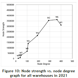 4.4. Relationship between the warehouses' node degree and node strength