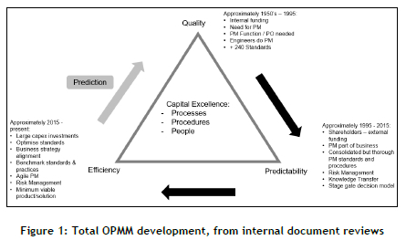 The company followed the general OPMM development noted in the literature. The OPMM development drivers are summarised as follows: