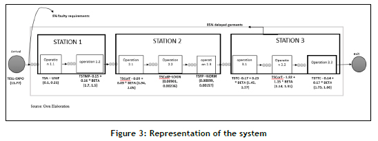 The system included an entity in transit, which was the batch order of the customer (requirement). This entity had attributes, such as the interarrival time between batches, while the workstations showed service time as a characteristic attribute.