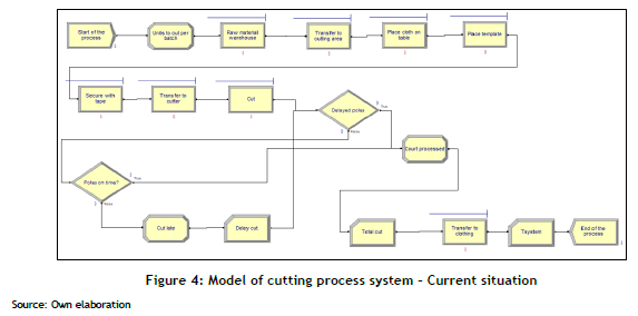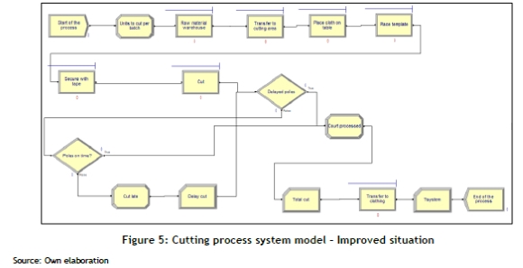 A previous study [3] investigated and comparatively analysed an issue related to cutting processes in a small-scale Peruvian apparel enterprise. Based on the literature, this study comprehensively understood the issue and suggested a general form and a general solution based on the implementation of lean manufacturing. This general solution was then simulated using Arena software, culminating in a comparative analysis of the problem indicators with those of the general solution and with other alternatives reported in the literature.