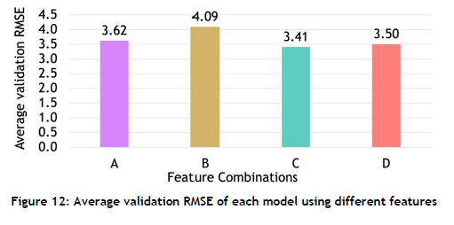 The average RMSE on the remaining three ML models was calculated for each feature combination to determine which resulted in the lowest RMSE across the three remaining models. The results are shown in Figure 12.
