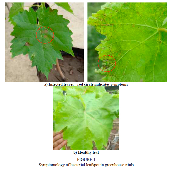 Bacterial leaf spot (BLS) is a disease of grapevine that occurs worldwide, especially during the months of August to September in warm and humid climates (Jones et al., 2014). Xanthomonas citri pv. viticola was reported to cause BLS of grapevine in Maharashtra, characterised by small, brown, angular, water-soaked lesions on the leaves, stems and fruit, leading to defoliation and direct fruit damage (Kamble et al., 2019). Severe infection may cause substantial damage to crops, with significant yield losses (Pernezny et al., 2003).