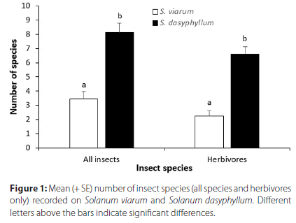 Natural enemy release or biotic resistance? Insect herbivores associated with the exotic Solanum viarum (Solanaceae) and a sympatric native congener in KwaZulu-Natal, South Africa