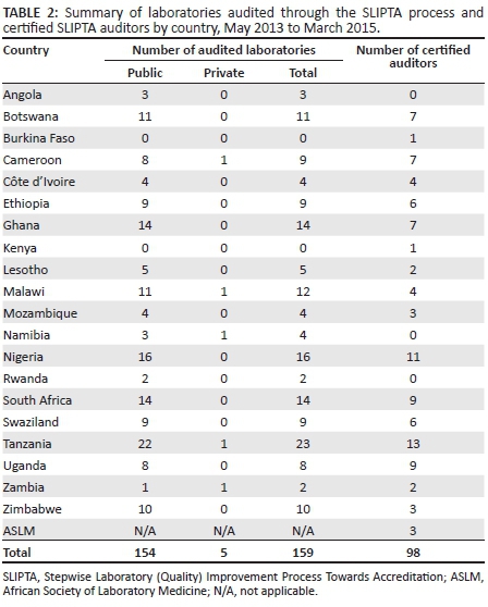 BACKGROUND: The increase in disease burden has continued to weigh upon health systems in Africa. The role of the laboratory has become increasingly critical in the improvement of health for diagnosis, management and treatment of diseases. In response, the World Health Organization Regional Office for Africa (WHO AFRO) and its partners created the WHO AFRO Stepwise Laboratory (Quality) Improvement Process Towards Accreditation (SLIPTA) program.