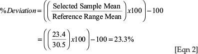 The percent (%) deviation was compared with the tolerance limit listed in the Reference Range Deviation Tolerance Limits table (Table 1).
