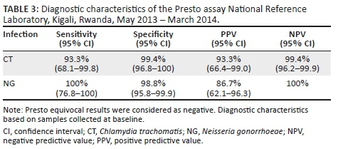 CONCLUSION: C. trachomatis and N. gonorrhoeae testing with the Presto assay was feasible in Kigali, Rwanda, and good performance was achieved.