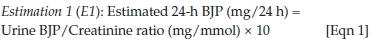 RESULTS: Correlation of estimation equations E1 and E2 to the measured 24-h urine BJP was 0.893. Patients showed no difference in classification of treatment response using either the E1 or E2 estimation equations when compared to the measured 24-h urine BJP results
