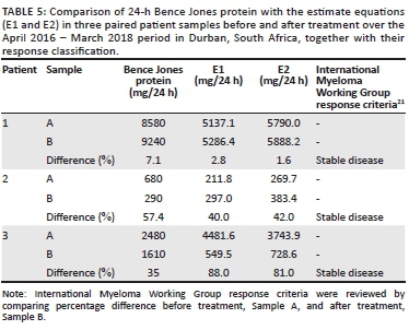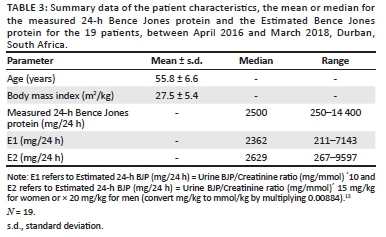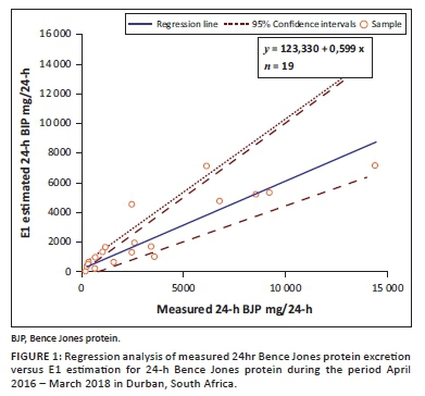 CONCLUSION: This study demonstrates that the estimated 24-h BJP shows a high degree of correlation with the measured 24-h BJP and can likely be used to monitor treatment response in South African patients with MM