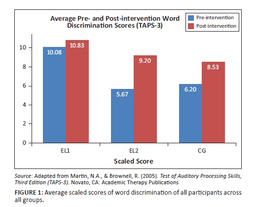 The average scores on the word discrimination sub-test are illustrated in Figure 1.