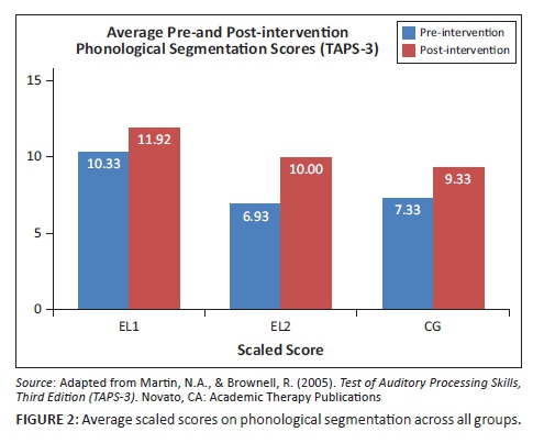 The average scores on the phonological segmentation sub-test of the TAPS-3 are illustrated in Figure 2.