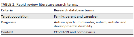 The COVID-19 pandemic led to a surge in pandemic-related research globally. Research on the experiences of caregivers of children with autism during COVID-19 has been expanding alongside autism awareness, with a growing number of studies utilising diverse methodologies across contexts. The majority of these studies, however, have been conducted in high-income settings, notably in the United States and Italy. While these studies contribute valuable insights into the effects of the pandemic on caregivers of children with autism, it is crucial to note the limited representation of research from Africa, specifically South Africa, highlights a critical gap. However, research from other low-middle and middle-upper-income countries can be used to inform the ways in which South Africa needs to consider continued support for children with autism and their caregivers both post-pandemic and beyond.