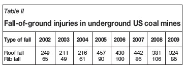 Rock falls remain a significant concern in US coal mines, as illustrated in the Tables I and II.