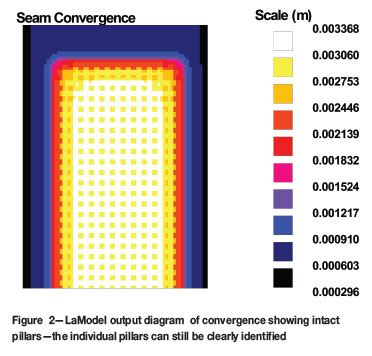 Other options will then have to be considered, such as leaving lines of pillars intact at the stage before the ESF drops to below 0.9. LaModel should then be used to determine how many lines of pillars have to be left in situ.