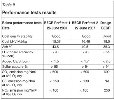The Emile Huchet CFB boiler has been in commercial operation since 1990 after passing the performance tests at maximum continuous rating (MCR) as reported in Table IV.
